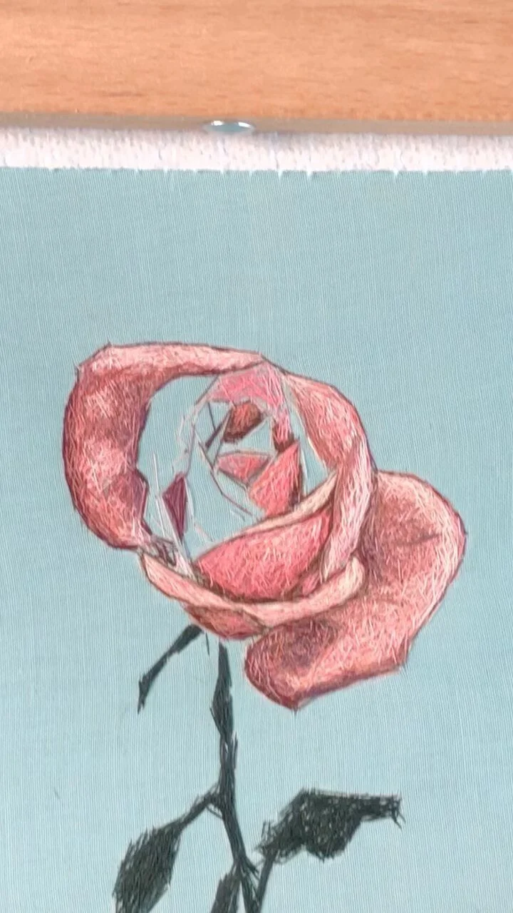 While working, I often find myself in a quiet space where I am able to slow down and think clearly; this is why I consider hand embroidery to be my therapy. I find myself drifting off to a place of complete stillness, only thinking of color. I also find the repetition of inserting the needle through the drum-like surface of the hoop extremely calming. I stitch as freely as possible not to overthink where the stitches are placed; by doing so, this allows the piece the freedom to grow into what it is destined to be. Each piece is extremely intricate and deeply layered in vibrant colored threads.